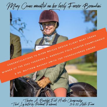 This young woman is excellent role model in and out of the hunt field. We have really enjoyed involving her in the design process at RMD, and she had proven to be a super website editor! Zsa Zsa has earned her Junior Colors at TVH.